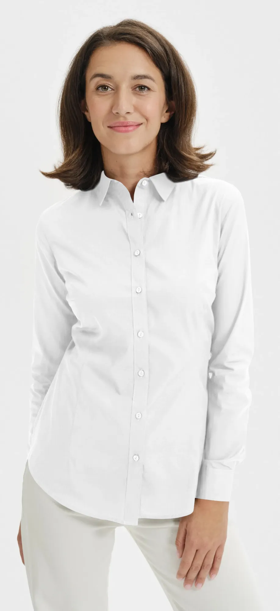 Dámská bavlněná halenka s dlouhým rukávem, bílá, L