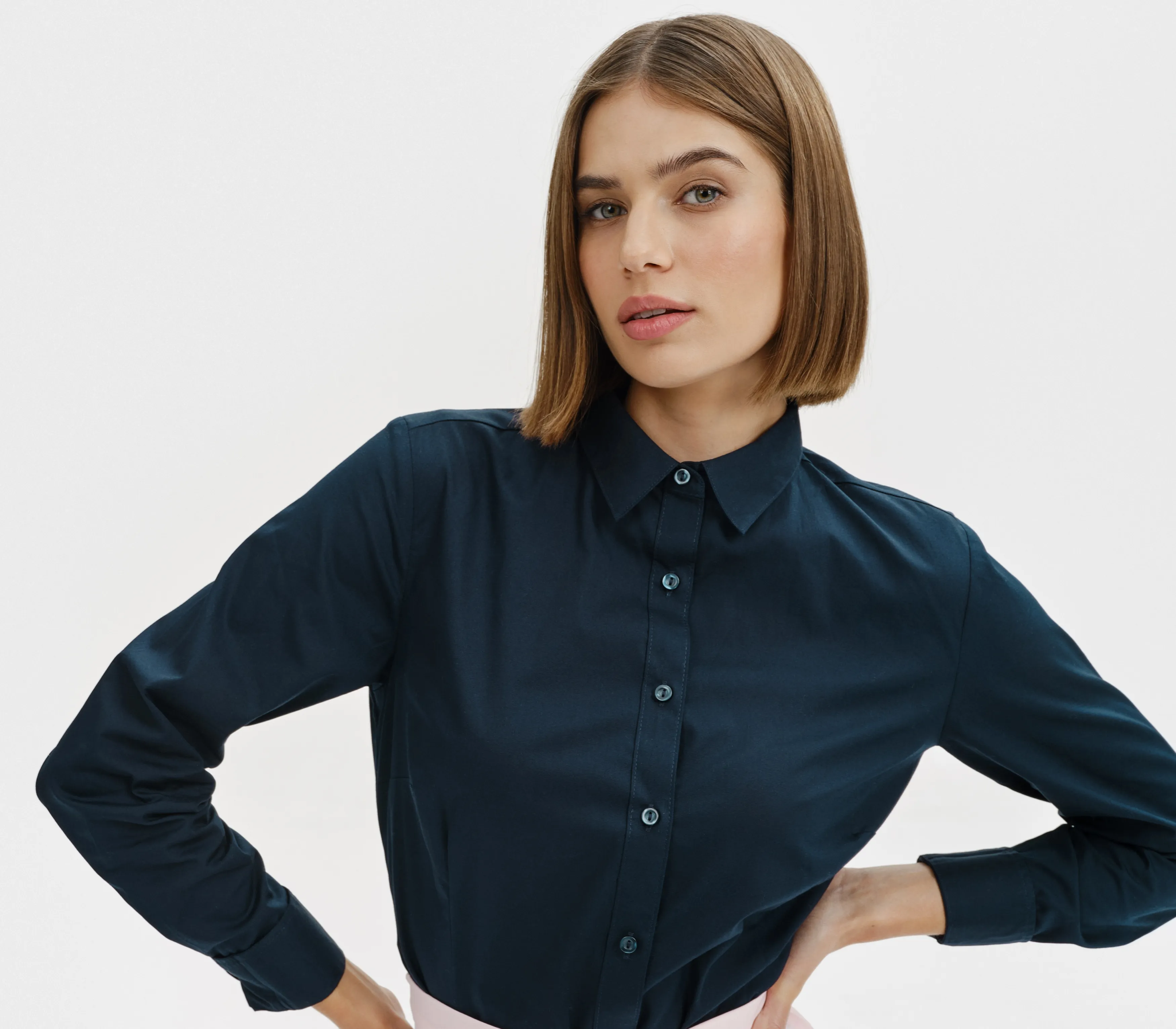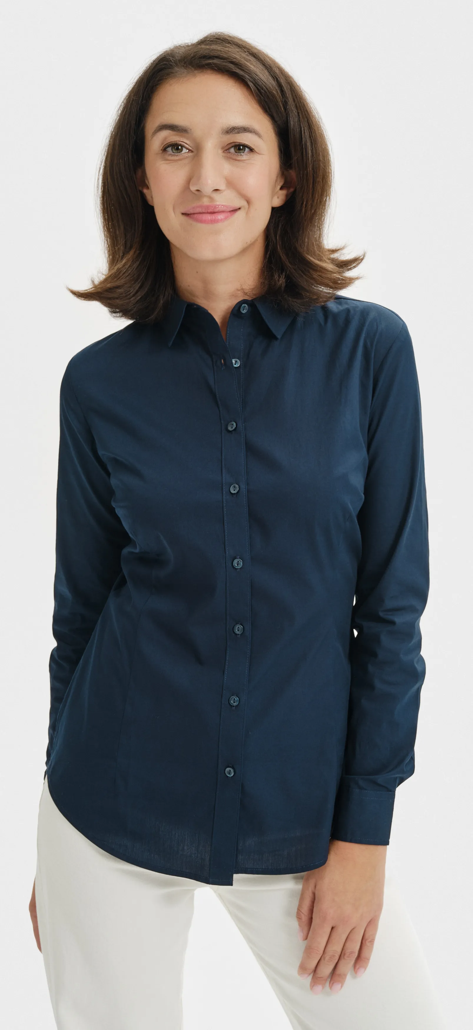 Dámská zúžená bavlněná košile s dlouhými rukávy.