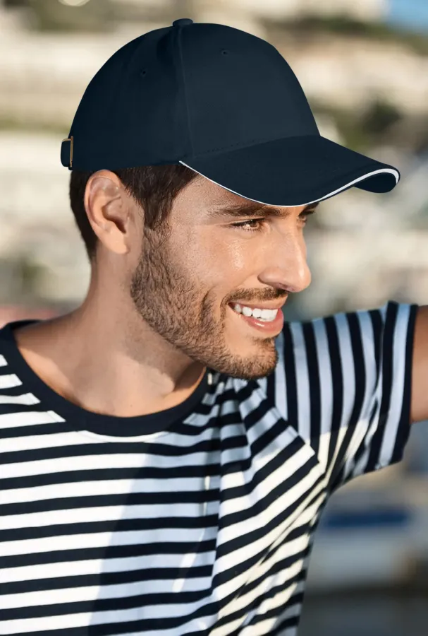 Kvalitní 6-panelová bavlněná kšiltovka s mosazným klipem a kontrastním proužkem.