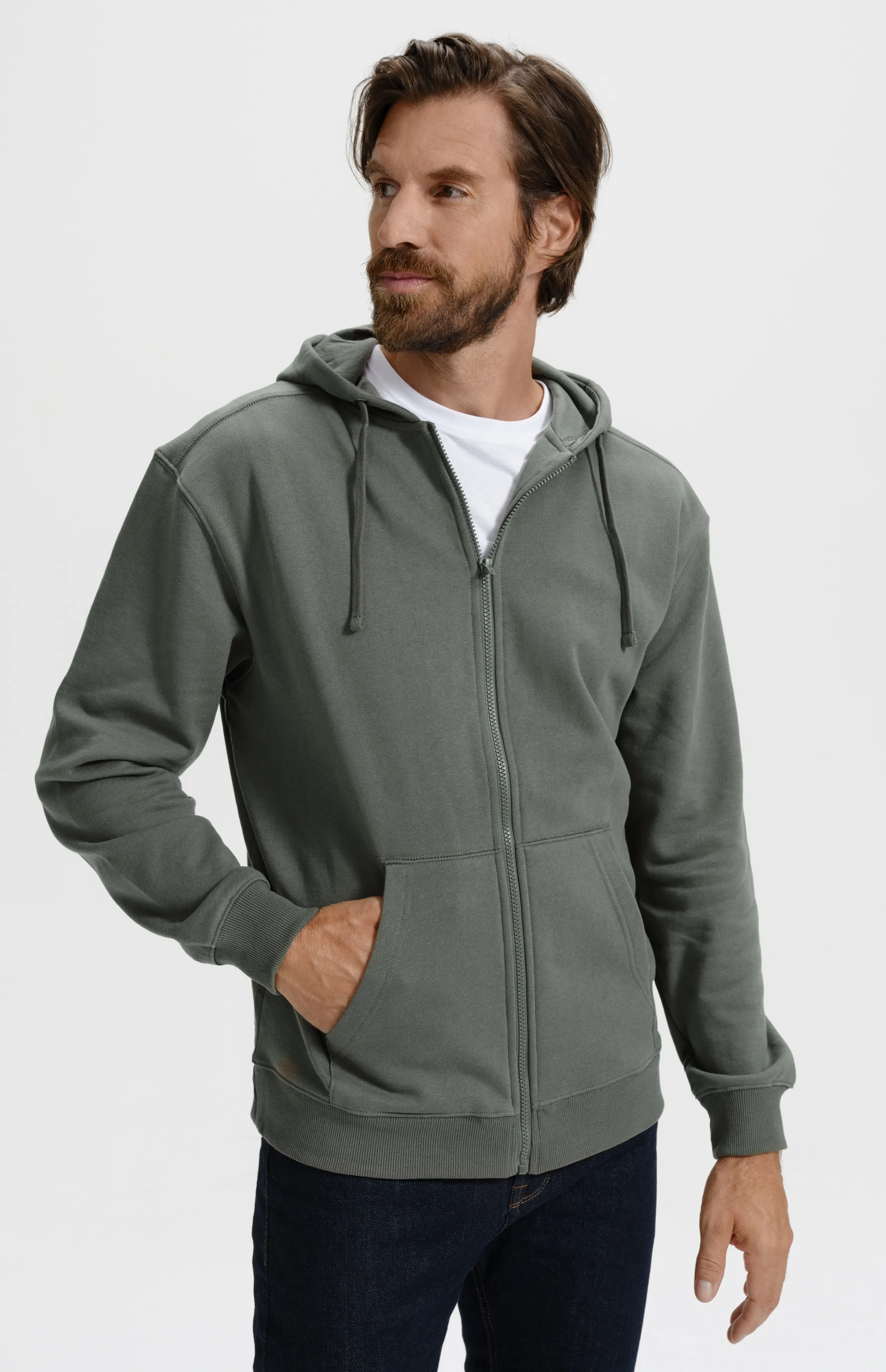 Pánská mikina s kapsami vpředu ve stylu klokanky, s kapucí a se zipem.